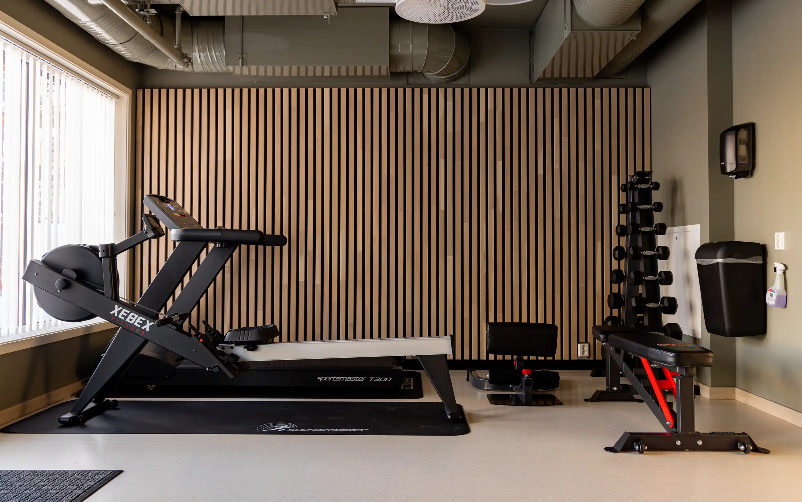 Leva Bergerløkka har også et treningsrom med styrke- og kondisjonsapparater. Her blir det enkelt å holde seg i form.
